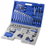 - W zestawie znajdują się nasadki, końcówki, klucze, grzechotki oraz inne akcesoria, zapewniając wszechstronność i elastyczność w obszarze napraw, konserwacji i montażu.