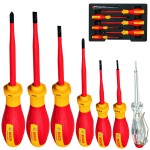 Każdy wkrętak został przetestowany pod napięciem do 10 000 V i posiada certyfikat VDE, potwierdzający bezpieczne użytkowanie przy napięciu do 1 000 V zgodnie z normą DIN EN/IEC 60900. Próbnik fazowy również spełnia rygorystyczne normy bezpieczeństwa DIN VDE 0680-6.